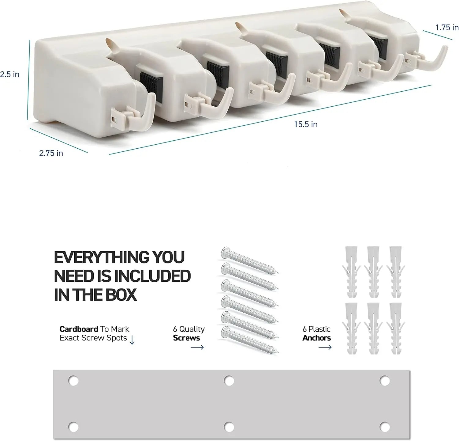 - 5 Heavy-Duty Slots: Holds mops, brooms, and squeegees up to 5kg each