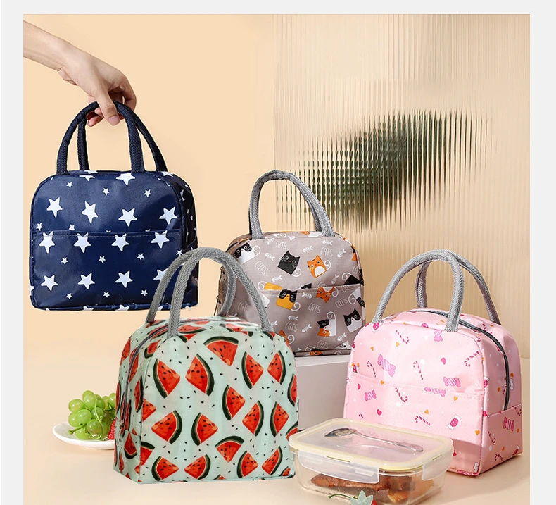 Keep your meals fresh and at the perfect temperature with this stylish Printed Insulated Lunch Bag. Designed for both hot and cold food storage, this canvas handbag features a thickened aluminum film interior that ensures long-lasting thermal insulation. Lightweight, durable, and eco-friendly, it's ideal for school, work, travel, or picnics. The compact design fits easily into backpacks or totes while the fashionable print adds a touch of personality to your daily routine.
