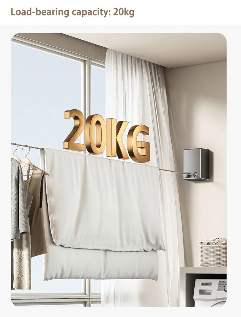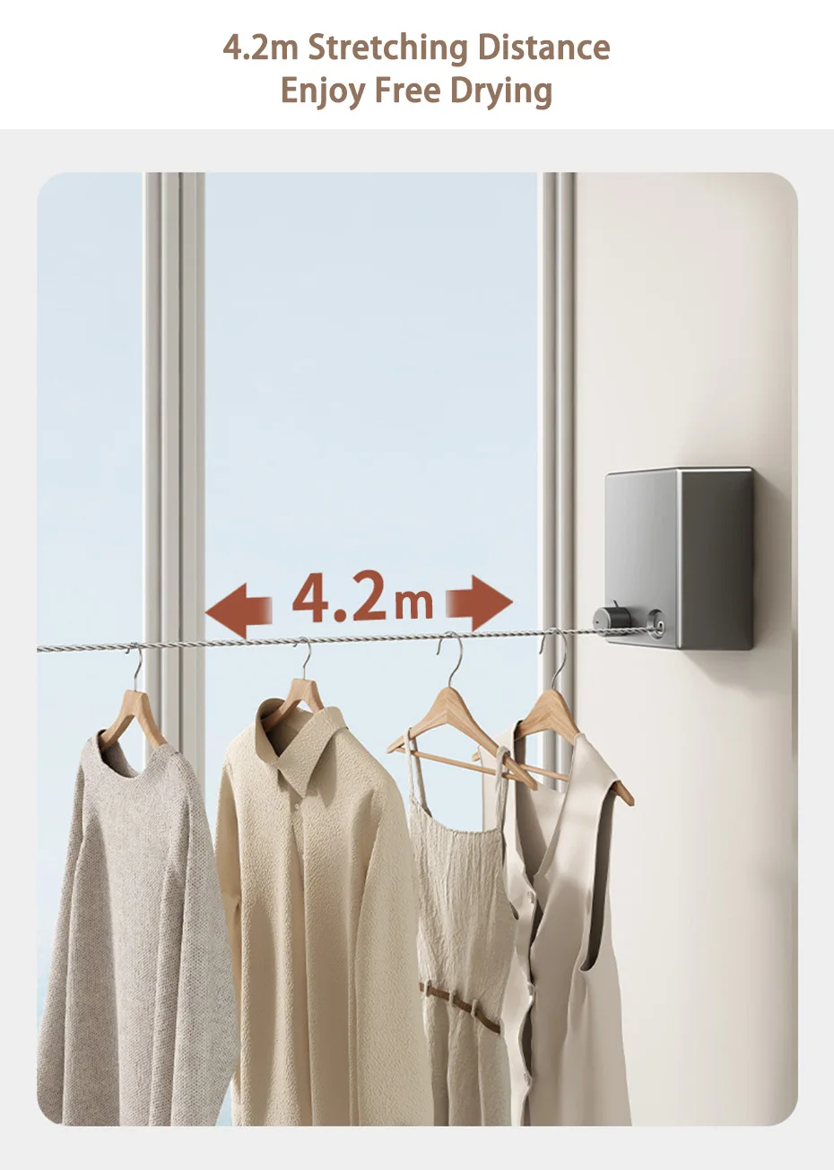 Maximize your drying space with this Wall Mounted Retractable Clothesline, featuring a heavy-duty 4.2-meter drying rope that’s perfect for both indoor and outdoor use. Designed for strength and convenience, this space-saving laundry solution mounts easily to any wall and retracts smoothly when not in use. Ideal for homes, apartments, balconies, and bathrooms, this clothesline is a smart, eco-friendly way to air-dry clothes, towels, or delicates without the need for bulky drying racks.